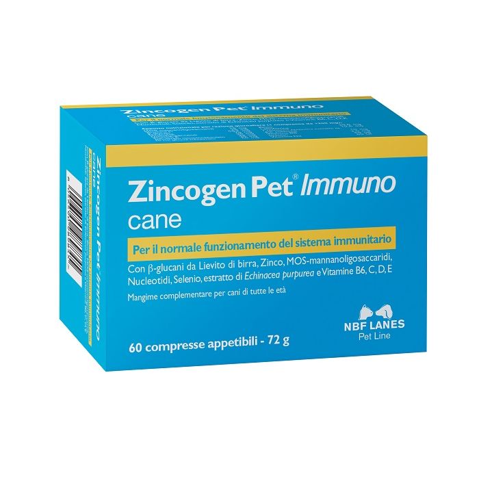 Con beta-glucani da Lievito di birra, zinco, MOS-mannanoligosaccaridi, nucleotidi, selenio, estratto di echinacea purpurea e vitamine B6, C, D, E.